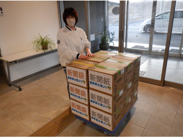 今年度2回目、新聞紙を愛厚ホーム西尾苑に寄贈しました。新聞紙を使いやす……