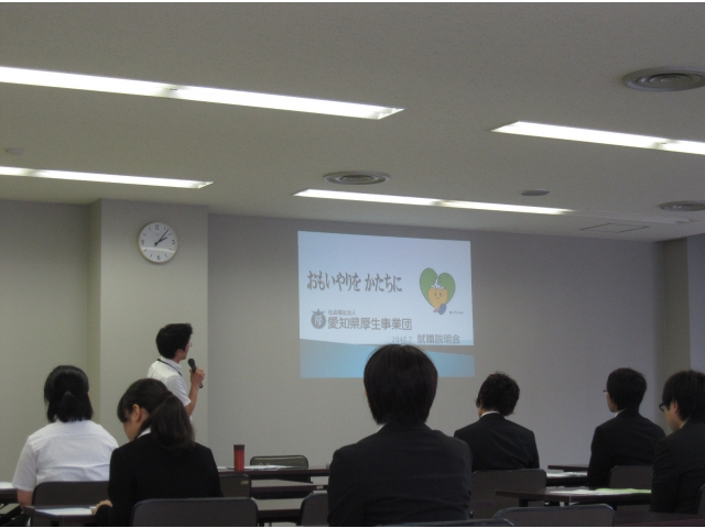説明会では法人概要・給与・福利厚生等の説明、先輩職員との意見交換を実施し、活発な質問もいただきました。