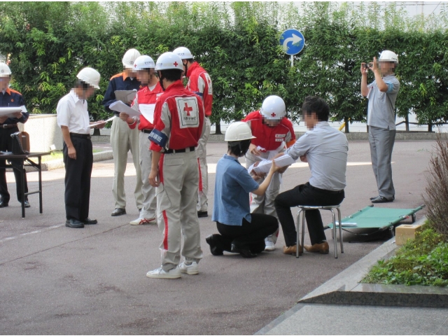 事務局の職員も自衛消防隊員として、指揮班、避難誘導班、消火班、警備班に分かれ、それぞれ被害を最小限にとどめるための活動を行いました。