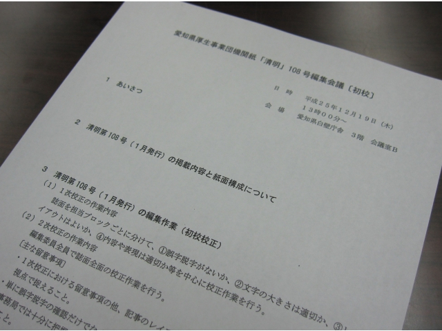 本団の機関紙『清明』第108号の発行に向けて、編集会議を開催しました。