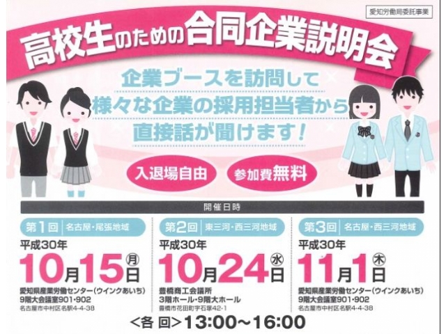 公益財団法人愛知県労働協会が主催する「高校生のための合同企業説明会」に出展いたします。