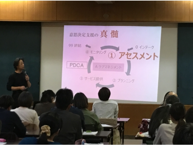 平成30年10月29日(月)、ケアマネ・サービス管理責任者合同研修を開催し、特養の施設・居宅ケアマネと障害施設のサービス管理責任者・相談支援専門員が受講しました。