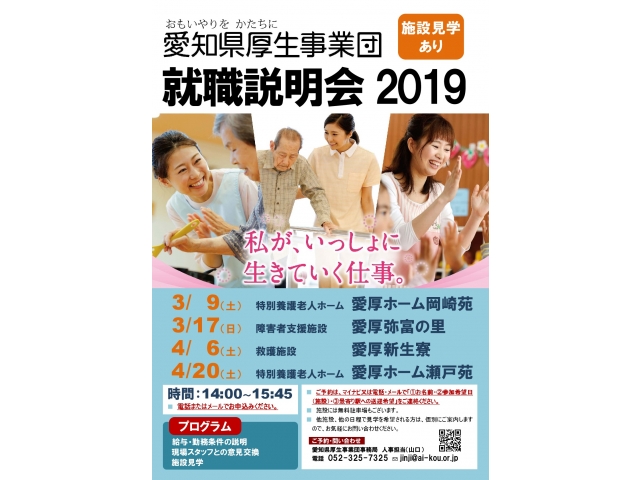 給与・勤務条件の説明、現場スタッフとの座談会、施設見学などのプログラムを予定しています。