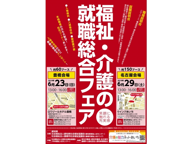 愛知県及び愛知県社会福祉協議会が主催する就職フェア(豊橋会場)に出展します。