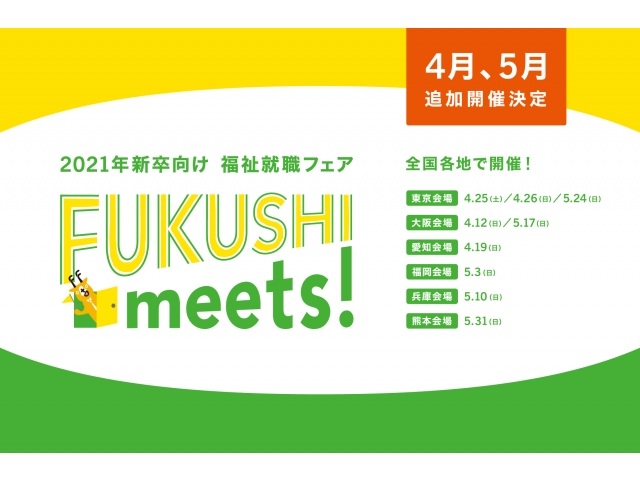 令和2年4月19日(日)にオンライン開催される福祉就職フェア『FUKUSHI meets!』に出展します。