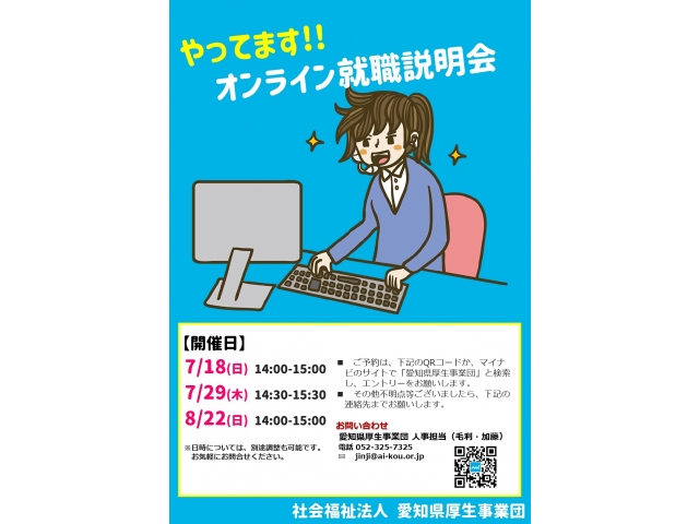 愛知県厚生事業団では7月以降も、オンラインでの就職説明会を開催していきます!