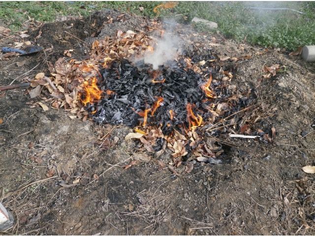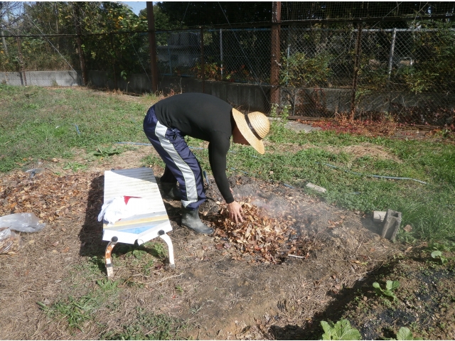 - 落ち葉を集めて焼きまーす♪
