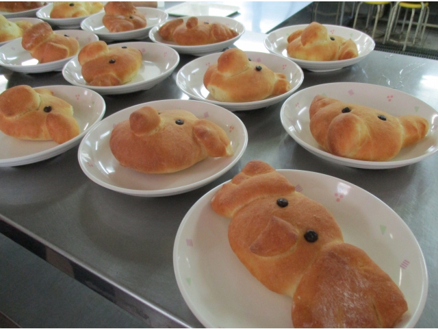 今日の学園のおやつは、皆がパン教室で作ったコアラパンです。