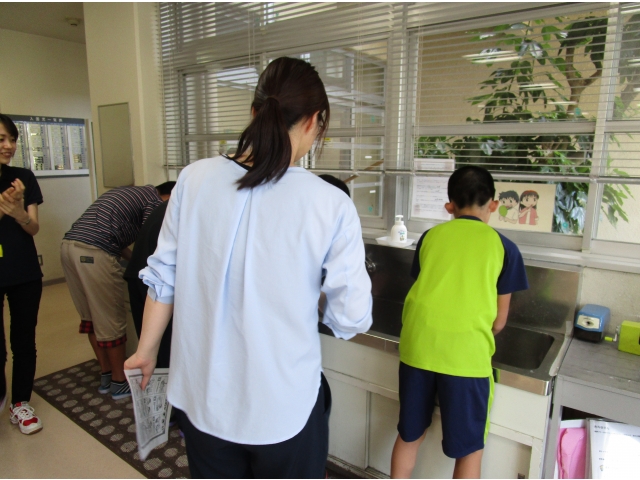 今日は、年に一度の手洗い講習会が開かれました♪子ども達は、普段からきれいに洗えていると思っていましたが、特殊なジェルと赤外線の機械に手を通すと、ばい菌がまだ残っていてビックリです!!手洗いは、感染症の予防にも役立ちます。意識して行うことの大切さを学びました~☆ありがとうございました~♪
