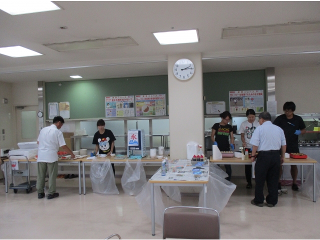 食堂へ移動し、ミニ屋台でたこ焼き、かき氷、スイカを提供しました☆
