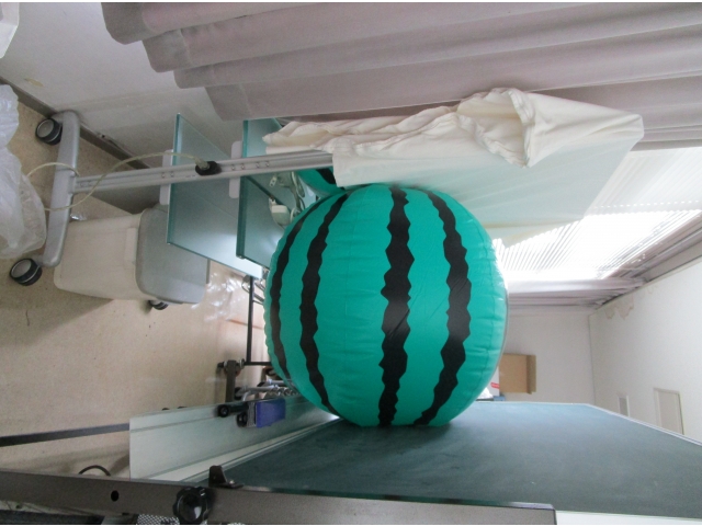 まずは、ダミーのスイカのビーチボールを棒で叩きます。