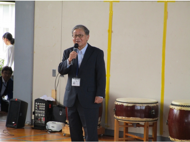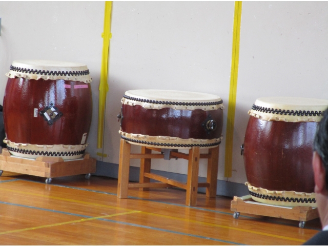 開会式後の、小学生による太鼓演奏。ボランティアのつみき様による工作、