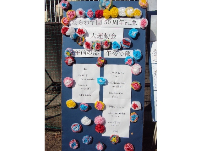 去る11月3日、ならわ学園ではならわのみんなと職員のみの小規模で運動会を行いました。なんとならわ学園は創立50周年。運動会のメニューに加え今年は記念の学園クイズも実施しました。外部の方は呼ばない運動会でしたがみんな一所懸命競技に参加していました。