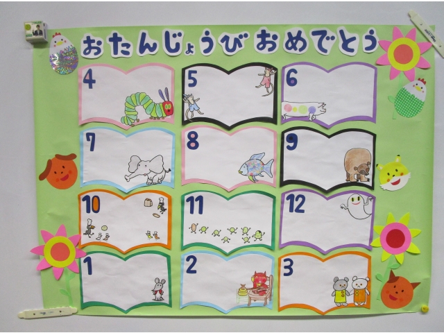 昨年、保育実習で実習生の皆さんが作ってくれた作品です☆コロナの影響で全編オンラインのみの実習となりほとんどならわっこのみんなと関わることが出来ない中で一生懸命作って頂きました。作品にはみんなの誕生月ごとに誕生日を書き入れてみんなの見える所に掲示しています。実習生の皆さんありがとうございました!