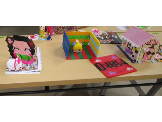 先日、希望者を集いアイロンビーズを行いました。 子どもたちは見本の本をみながら思い思いの作品を作りました。みんな集中して作品をつくりました。 素敵な作品が出来ました。