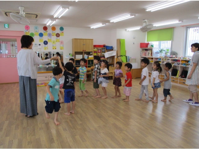 春夏秋冬と、年に4回高橋先生にわらべ歌指導をしてもらっています。次は、秋です。子供たちはとても楽しみにしています。