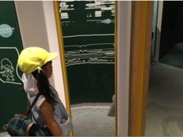 プラネタリウム鑑賞の後は、ほかの展示をみてきました。熱い部屋、寒い部屋をみんなで入り、もぐらのトンネルをくぐったり、不思議な展示に、目を輝かせているみんな。