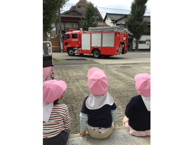 消防車がでてくる絵本を毎日読むくらい消防車が大好きなもも組さん。