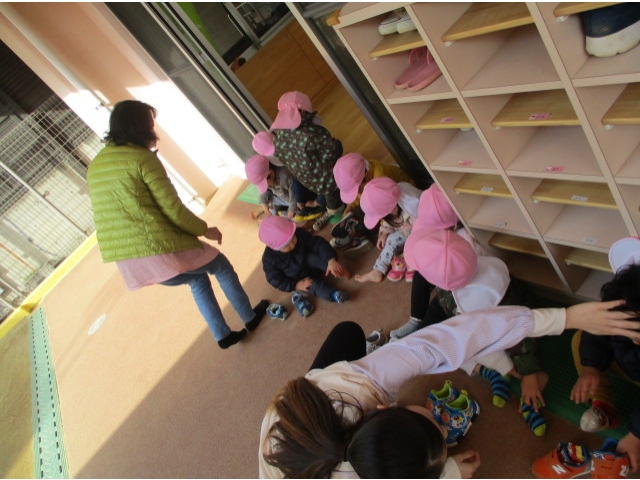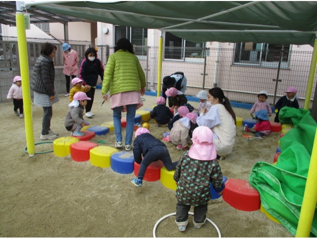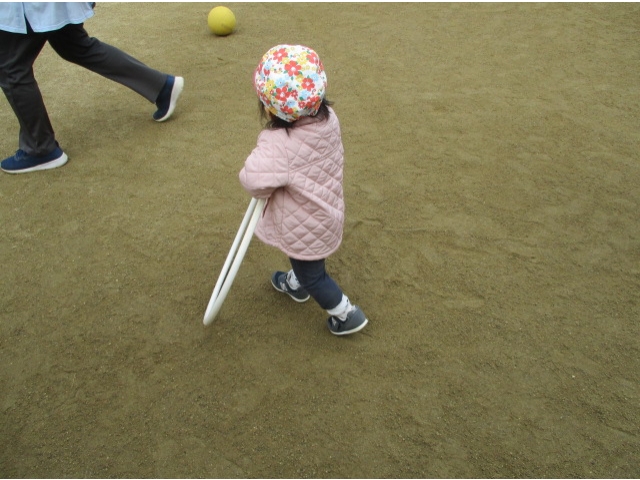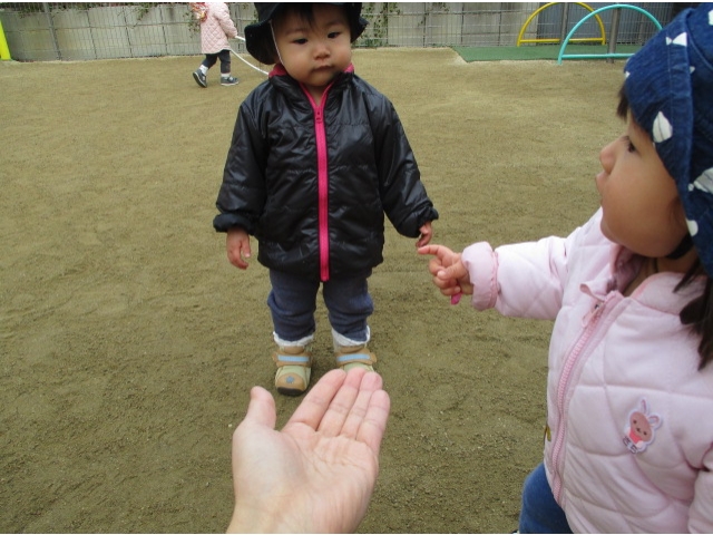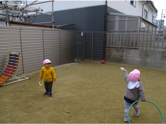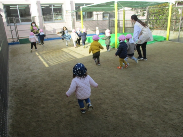 この日も冬らしい気温でしたが、午前中の短い間だけ園庭に出て遊びました!