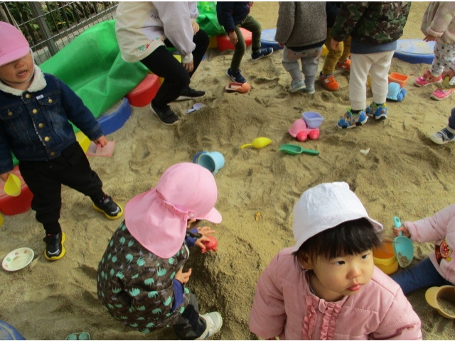さらさらのお砂で、思い思いに砂遊びを楽しんでいます。