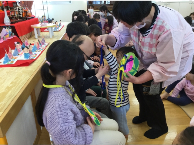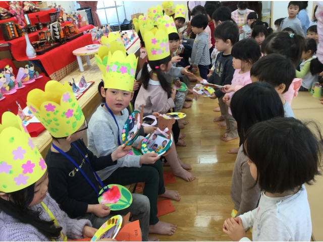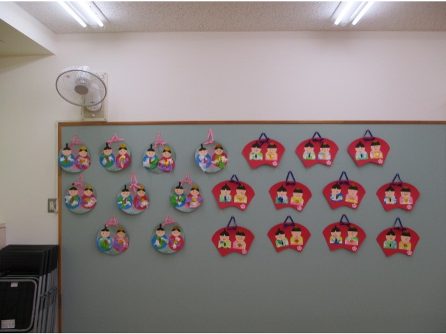 0・1・5歳児は壁掛け型、2歳児から4歳児は置き型のおひな様を作りました
