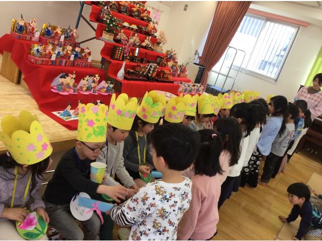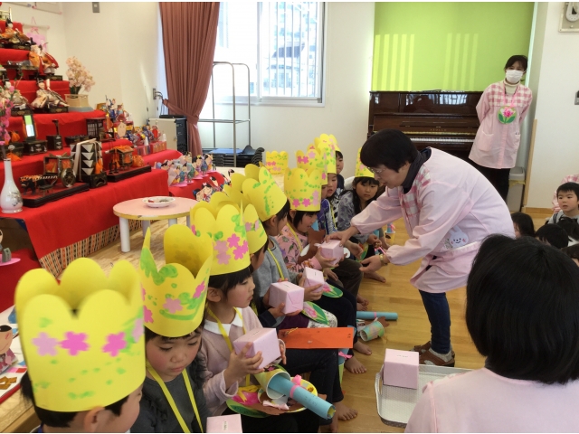 ひな祭りの時期も近いので、各クラスでおひな様を作りました