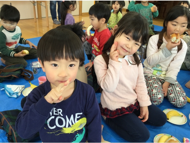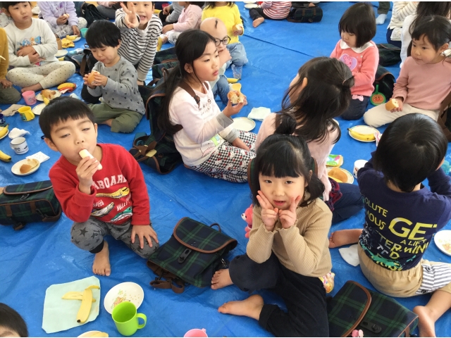 3月3日(火)にお別れ遠足へ行く予定をしていましたが、コロナウイルス感染予防のため、園内でお別れ遠足ごっこを行いました。