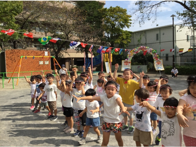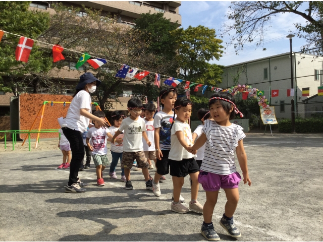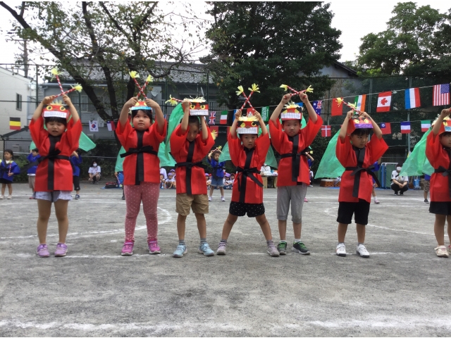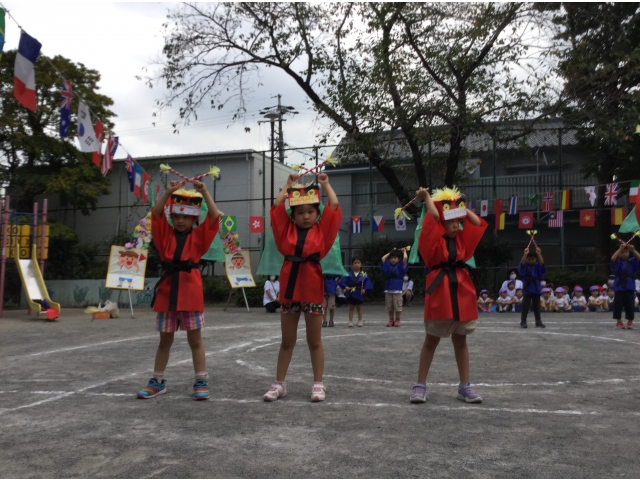 2歳~5歳のたてわりのお遊戯では「村まつり」を踊りました