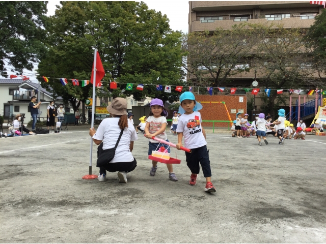 4・5歳児は障害物競争やリレー、遊戯「獅子の舞」などたくさんの競技に出場し大活躍でした