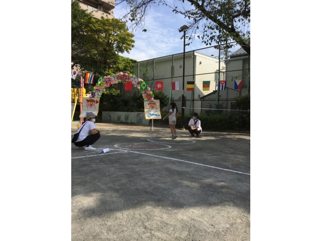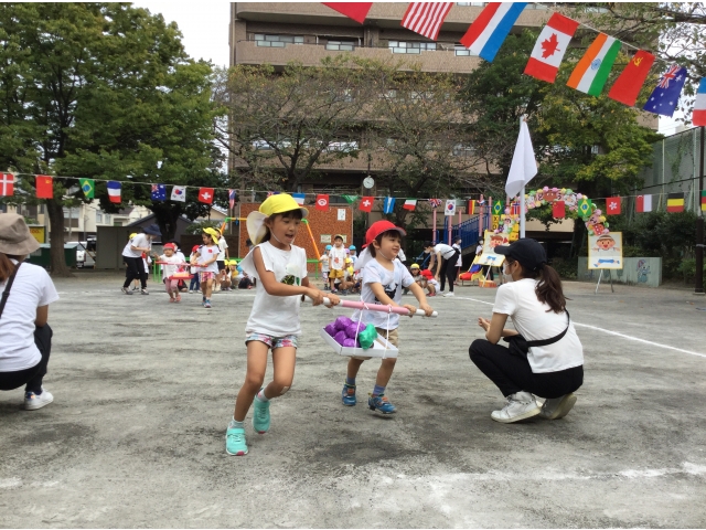 たてわりの競技は、今年度のグループ名に因んで、ぶどうとケーキを落とさないようにお世話の子と一緒にバランスを保ちながら上手に運んで、次の子に交代していました