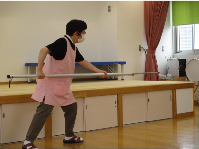 先生たちもさす股を持って、不審者を捕まえる練習を子ども達の前で行いました。子どもたちからは「せんせい がんばってー!」と大きな声援が聞こえてきました。