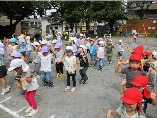 ばら組さんのピアニカにあわせて、元気よく歌っています! 体操も体をたくさん動かして、楽しみながら取り組んでいます。
