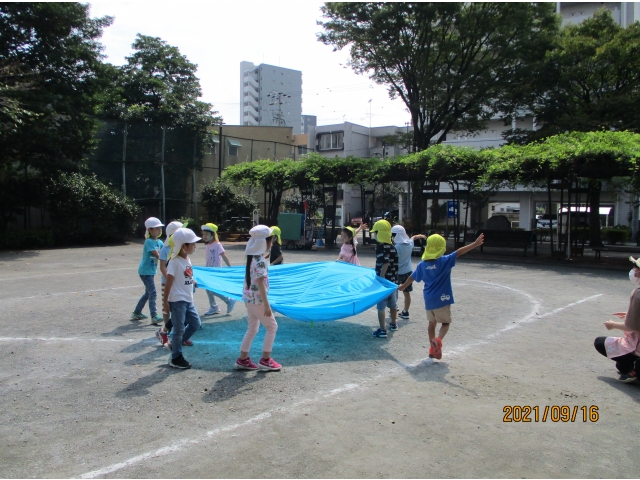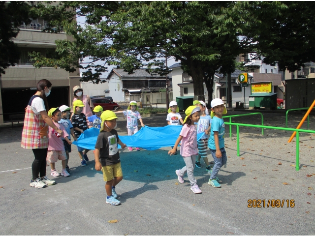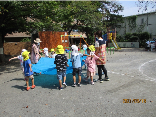 「大きい布でやるんだよ」「見てね」と見てもらうことを楽しみにしながら、練習をしています。