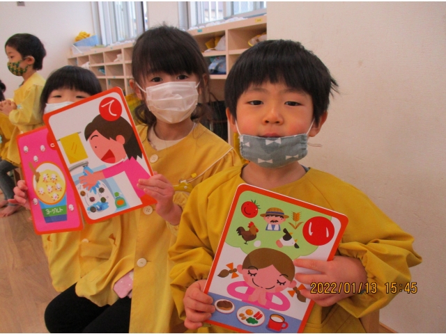 最後は何枚か数えました。とれた子もとれなかった子も「楽しかった~。」と良い笑顔でした。また、ジャンボかるた大会をしようね。