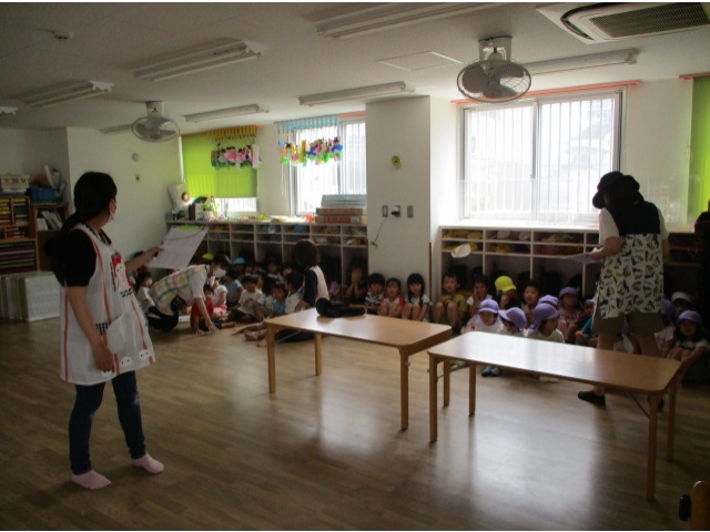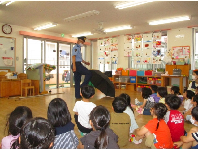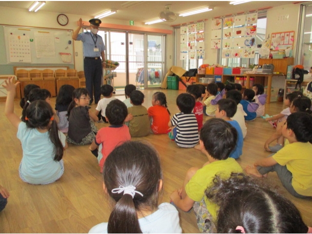 訓練後は、ばらゆり保育室に集まり警察署員の方からの話を聞きました。