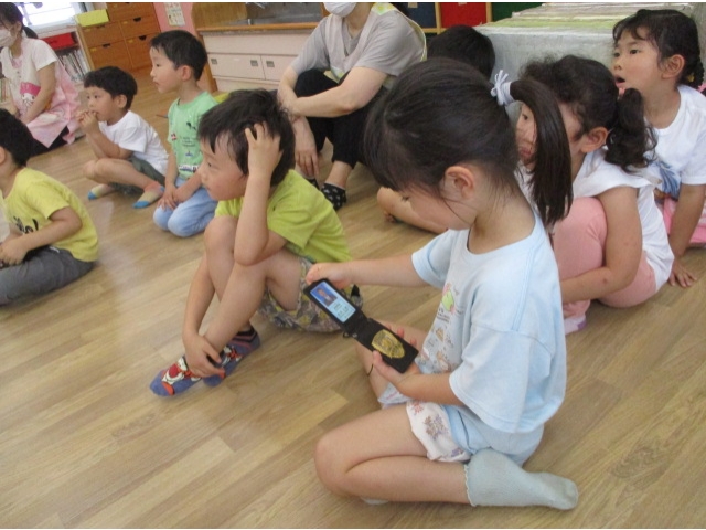 警察署員の方の証明手帳を実際に見せてもらい、大興奮な子どもたち。