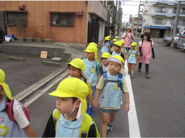 期待いっぱいで出発し、地下鉄に乗っての園外保育です。
