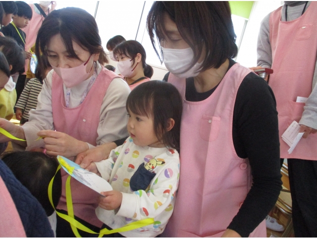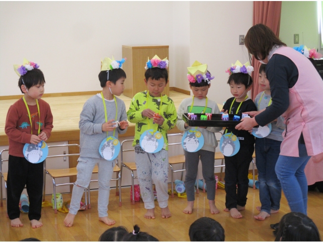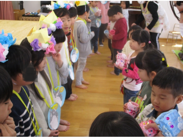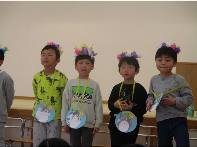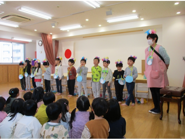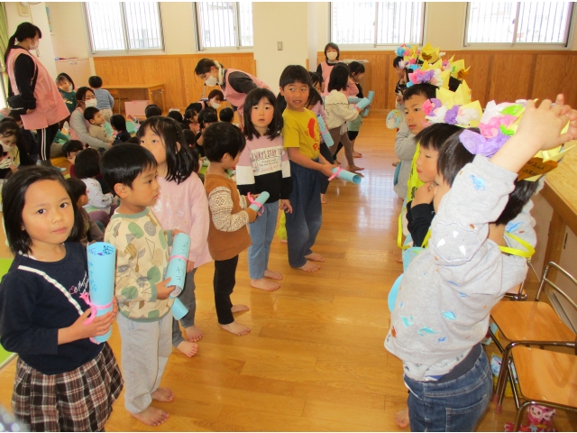 もうすぐ卒園をする年長組さんに、日ごろの感謝を込めて、全園児でお別れ会をおこないました。