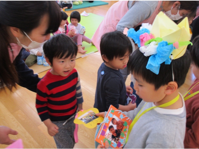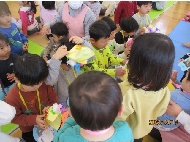 各クラス年長さんにお礼のプレゼントを渡しました。