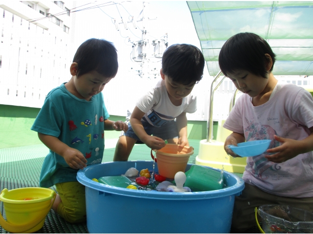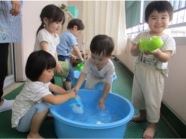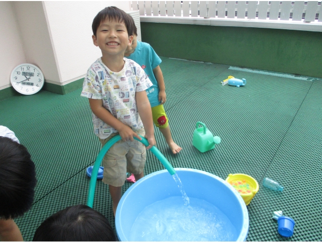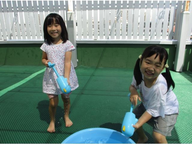 今年も暑い夏が続いていますが、子ども達は水に触れて楽しく過ごしています。