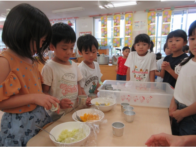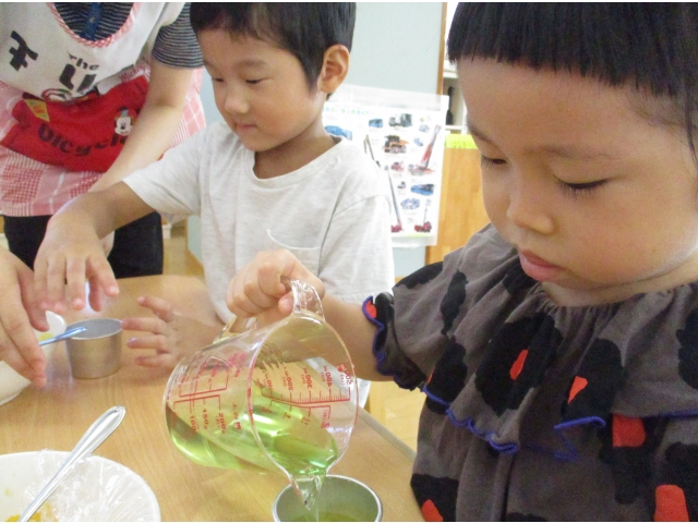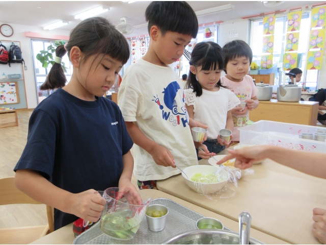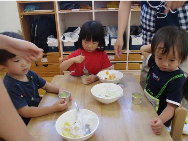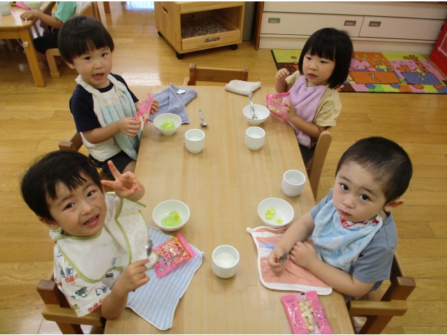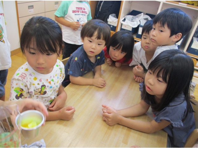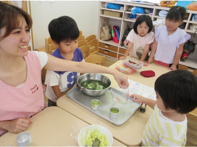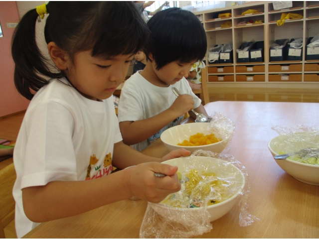 9月20日(金)、2歳児~5歳児のお友だちでゼリー作りをしました。