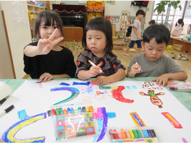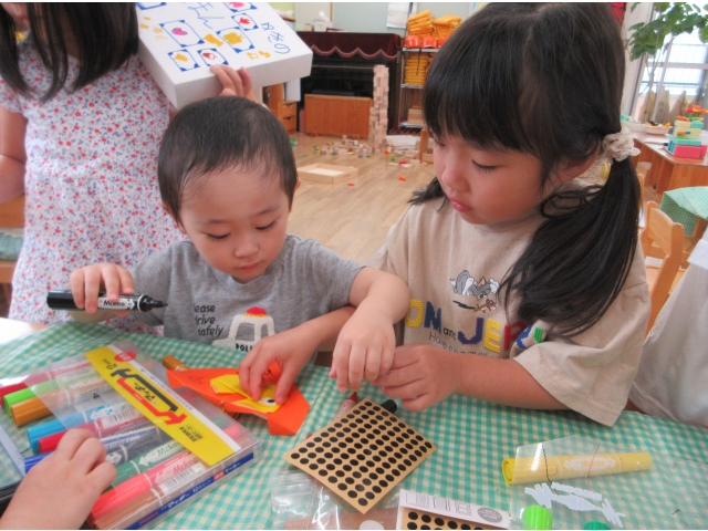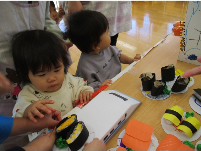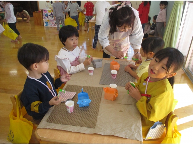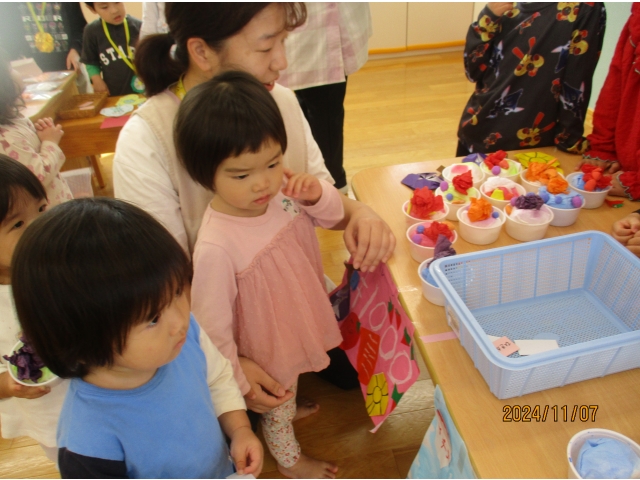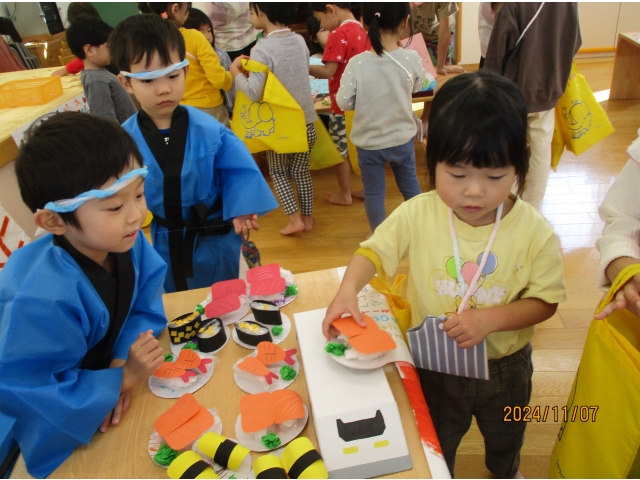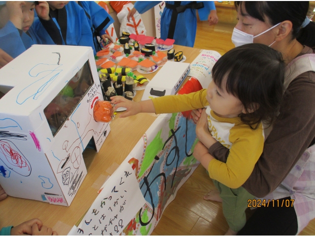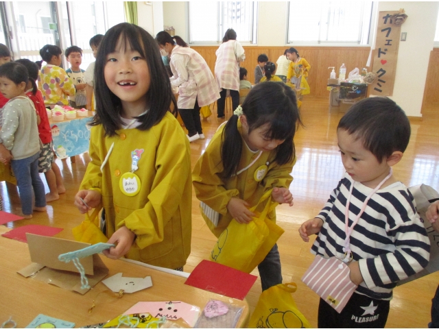 お店屋さん役では、「いらっしゃいませ~!」と大きな声でお客さんを呼びかけたり、お客さんからお金をもらい商品を渡しました!