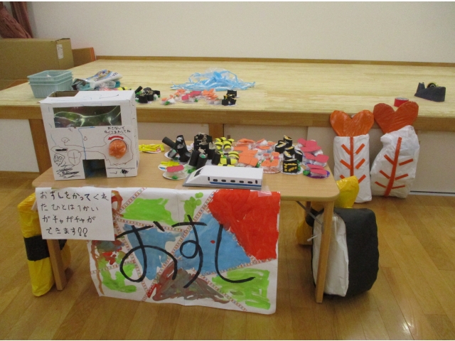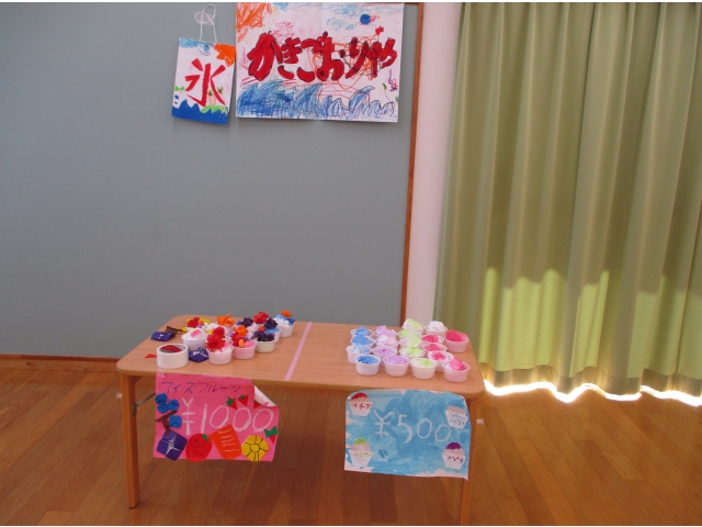 今年のごっこ遊びは「かき氷」「腕時計」「お寿司」「キーホルダー」の4つのお店を出しました!