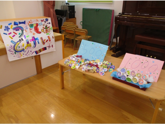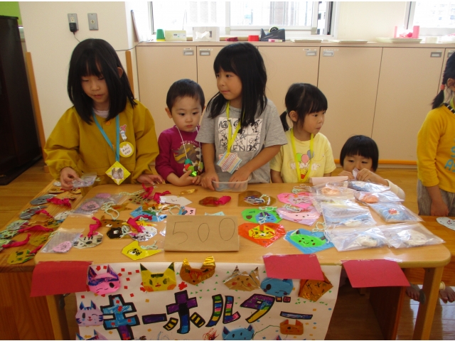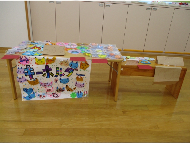 商品は子どもたちみんなで手作りしたものを売りました!みんなで一生懸命作り、素敵な商品ができました!!