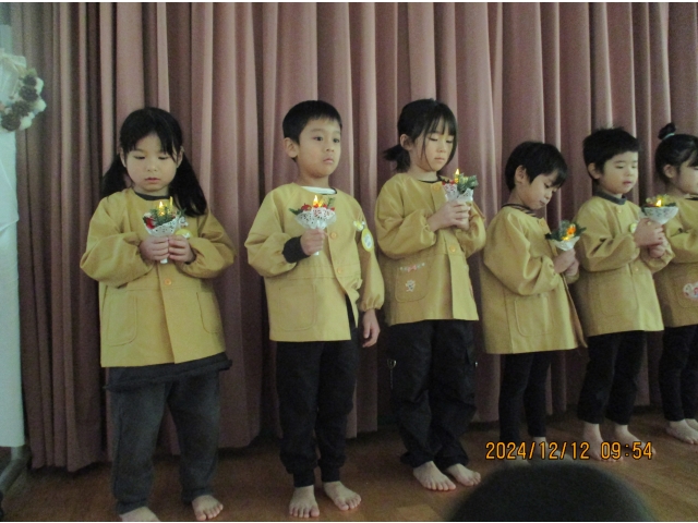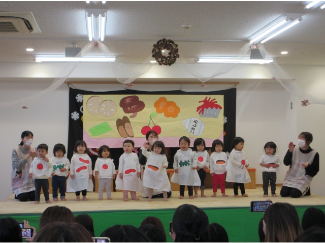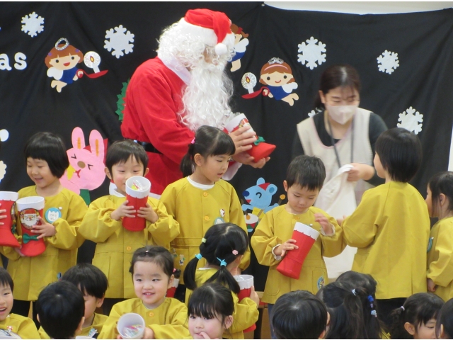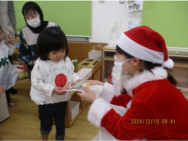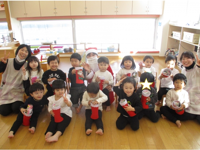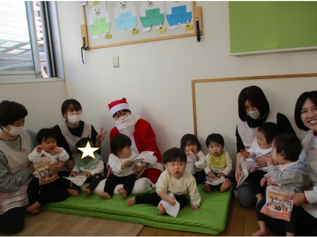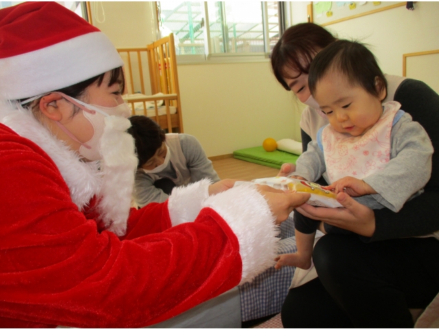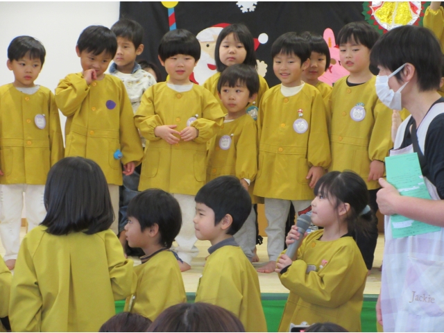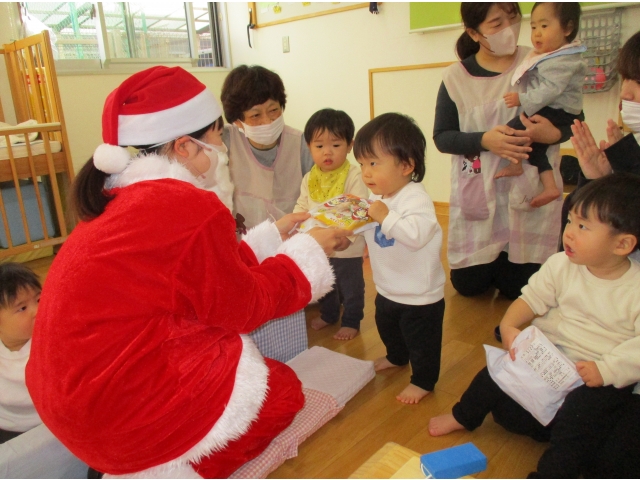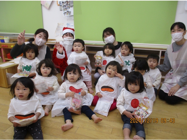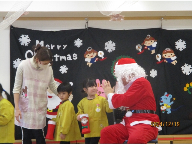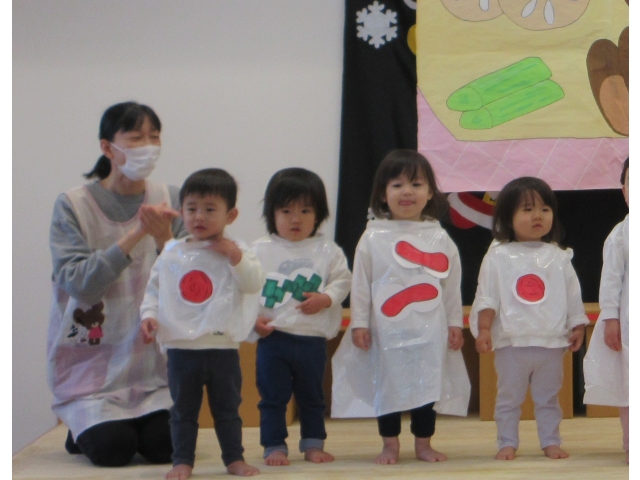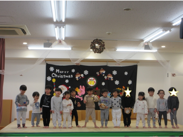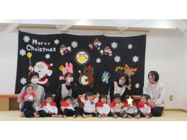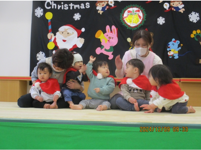 お名前を呼ばれると、はーい!と手を上げる姿やリズムに合わせて手拍子をする姿が見られました♪当日は緊張した様子もありましたが、サンタさんの衣装を着てとても可愛らしい姿を見せてくれました!