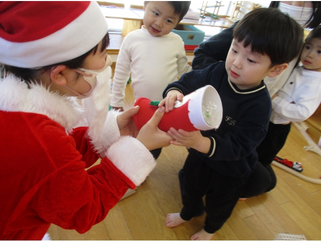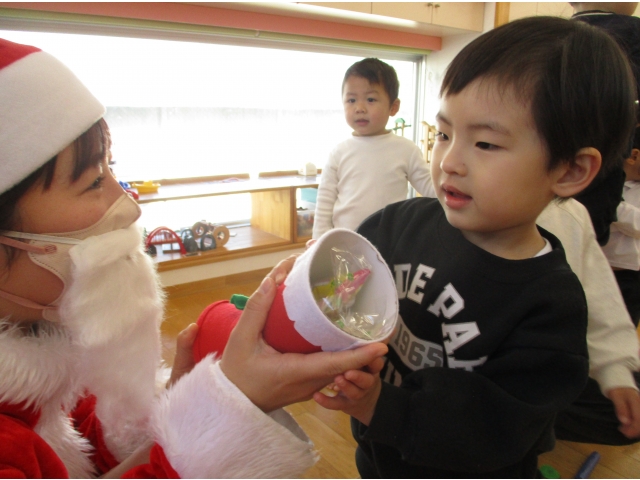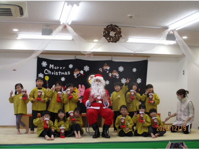 たくさん質問をしたり、一緒に写真を撮ったりしました!サンタさんからプレゼントをもらい、お礼に“サンタクロースの歌”をプレゼントしました!