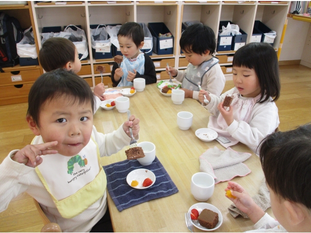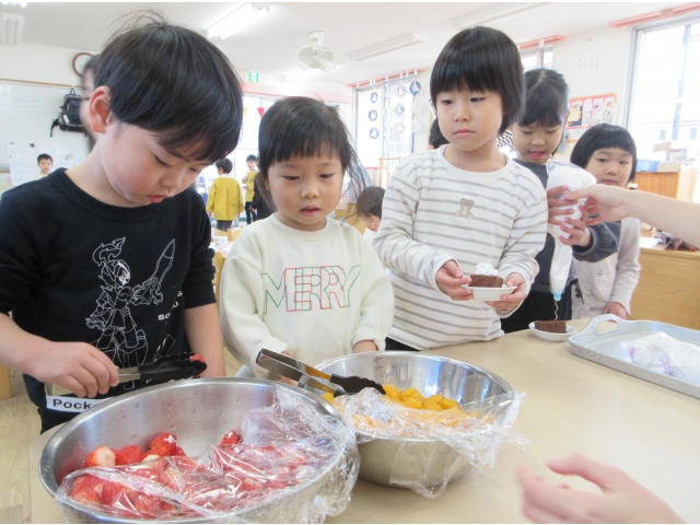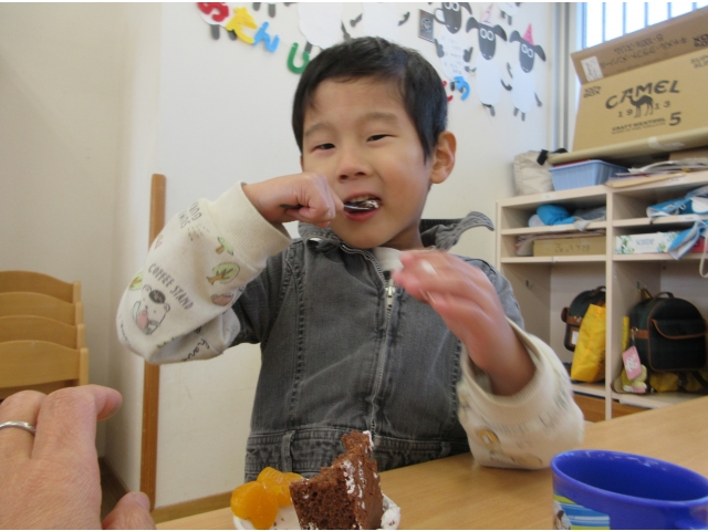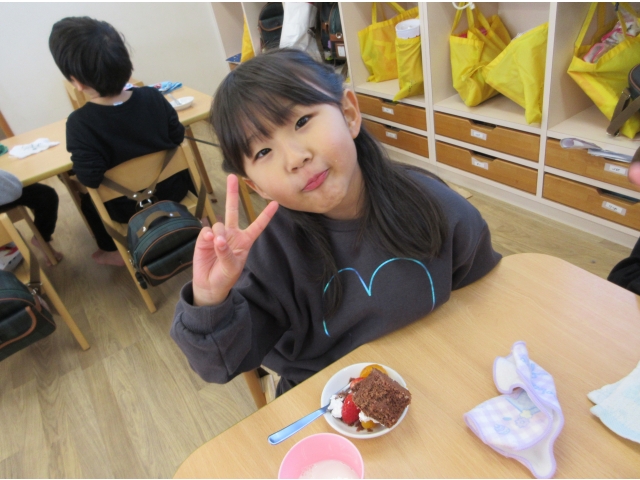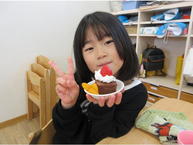 お部屋では、お給食の先生が用意してくれたクリスマスケーキの飾り付けをしてみんなで食べました♪
