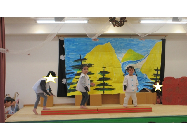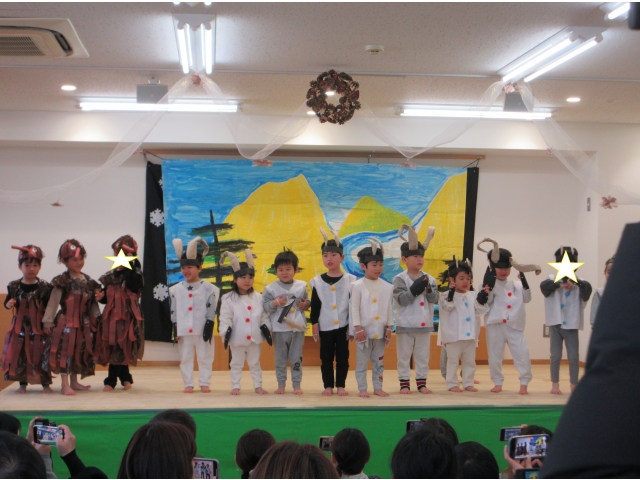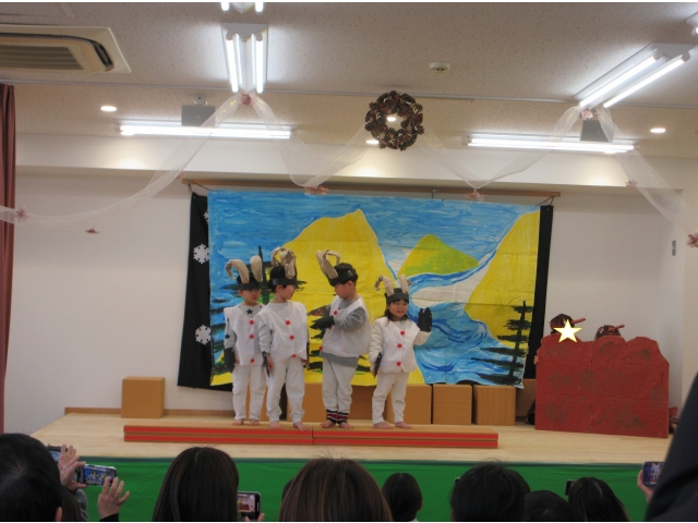 劇「3びきのやぎのがらがらどん」器楽合奏「ゆき」歌「あわてんぼうのサンタクロース」を発表しました!
