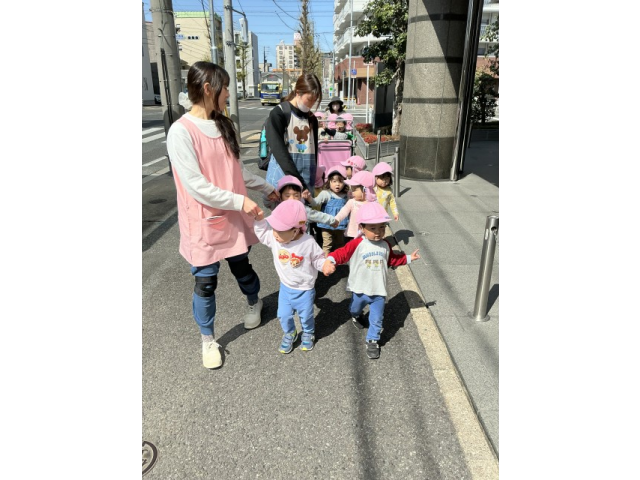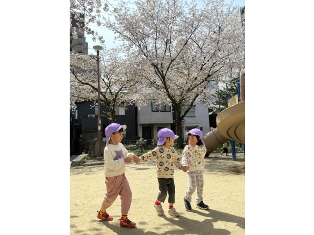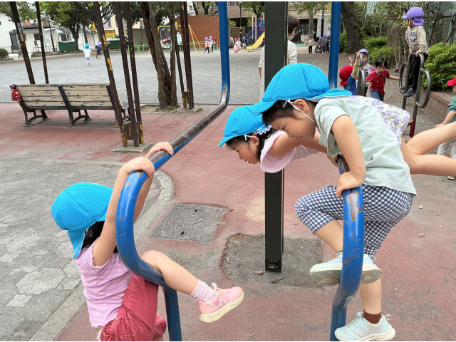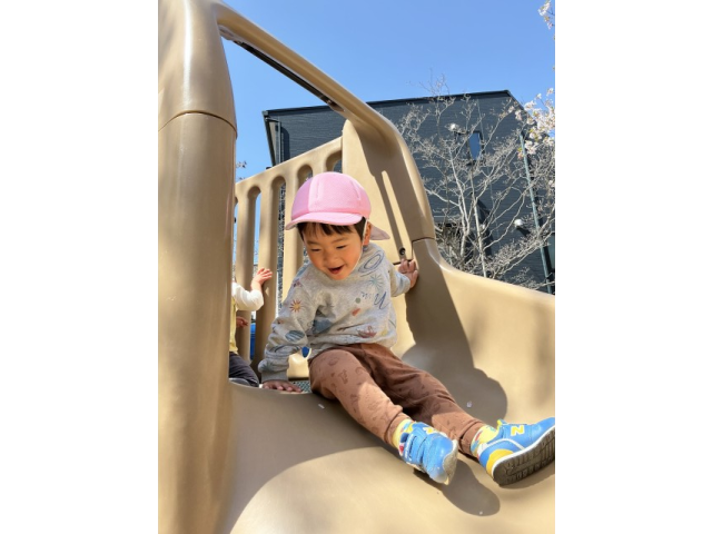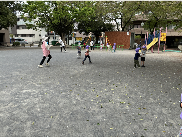体を動かすことが大好きな子どもたち。お天気のいい日は公園まで散歩に行って、鬼ごっこやかくれんぼなどを思い切り楽しんでいます。