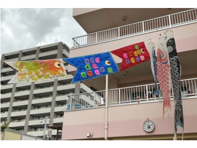 子どもの日の会では、こいのぼりの歌をみんなで歌い、先生から子どもの日についてのお話を聞きました。